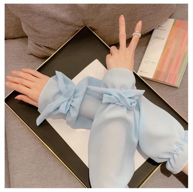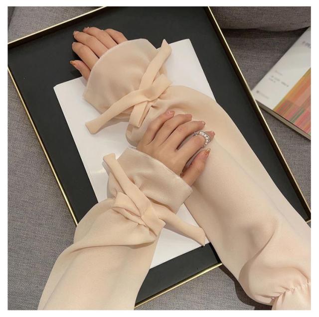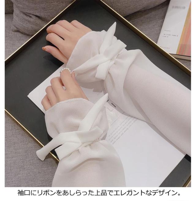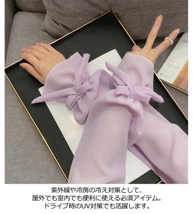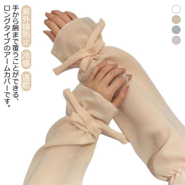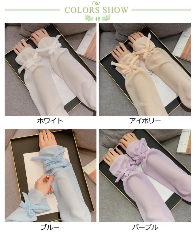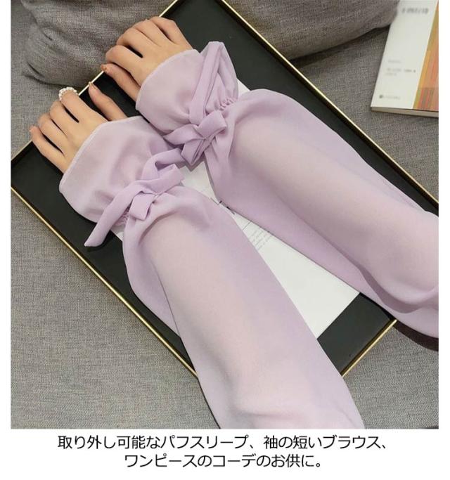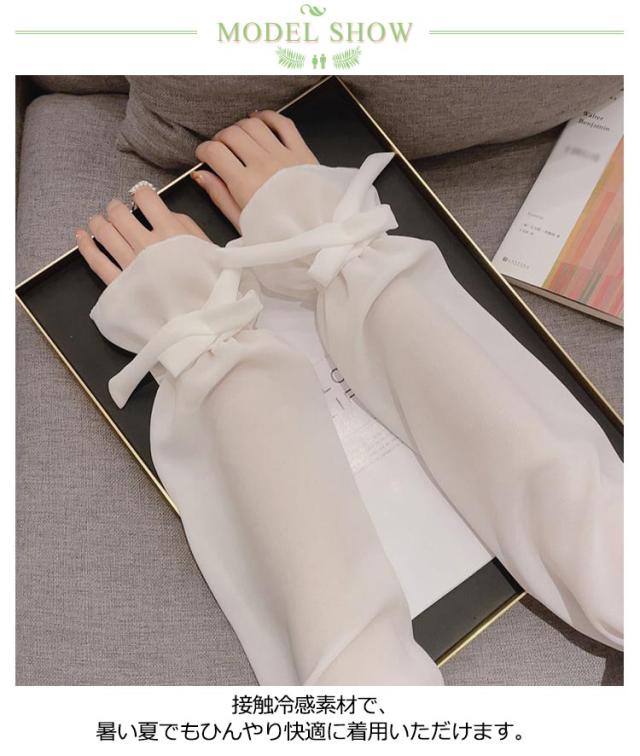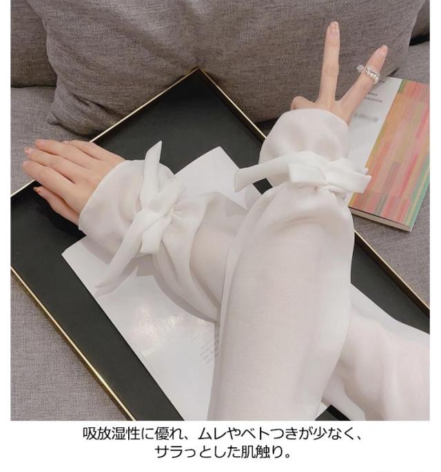 【送料無料】UV アームカバー パフスリープ 二の腕カバー リボン 滑り止め 婦人 レディース ロング アームカバー 冷感 涼感 涼しい 吸汗 速乾 日よけ 紫外線防止 付け袖 ドレス用 ワンピース用 冷房 対策