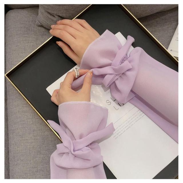 | 手から腕まで覆うことができる、ロングタイプのアームカバーです。 接触冷感素材で、暑い夏でもひんやり快適に着用いただけます。 吸放湿性に優れ、ムレやベトつきが少なく、サラっとした肌触り。 袖口にリボンをあしらった上品でエレガントなデザイン。 取り外し可能なパフスリープ、袖の短いブラウス、ワンピースのコーデのお供に。 紫外線や冷房の冷え対策として、屋外でも室内でも便利に使える必須アイテム。ドライブ時のUV対策でも活躍します。 | |