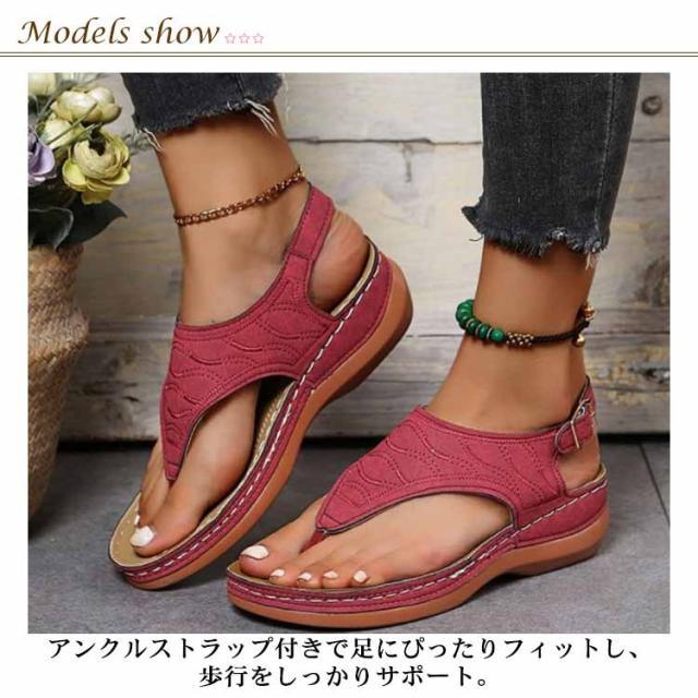 トングサンダル レディース ストラップ 厚底サンダル ハイヒール アンクルストラップ サンダル 美脚 シューズ 歩きやすい 疲れにくい ビーチサンダル スポーツ サンダル カジュアル 痛くない トング