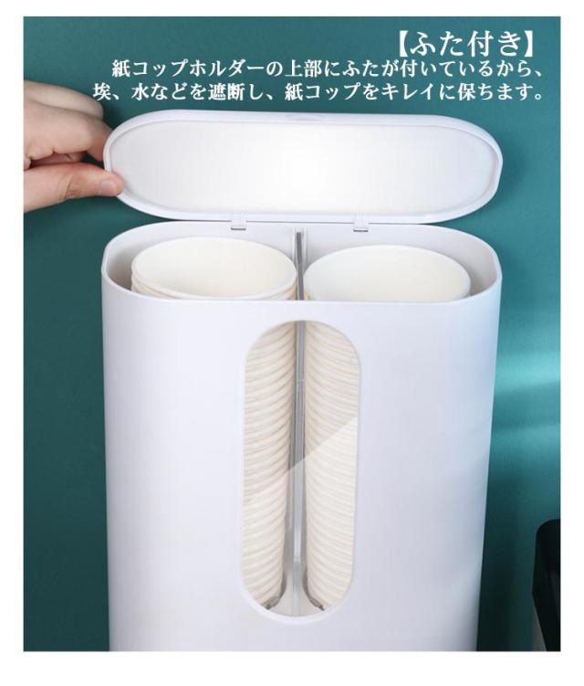 | 【ふた付き】紙コップホルダーの上部にふたが付いているから、埃、水などを遮断し、紙コップをキレイに保ちます。 【使いやすい】お手軽に紙コップを1個ずつ簡単に取り出せるカップホルダーです。補充も簡単、上から入れるだけ上フタを開けてコップを入れるだけなので補充も簡単でカップの収納、整理に簡単になります。 【適応カップサイズ】口径7.5cm以下で80個の紙コップが入れる大容量なコップホルダーです 【穴あけ不要】粘着式デザインを採用しております。穴あけ不要で壁面をちゃんと守れます。自家でも賃貸の家でも安心で使います。 【あらゆるな場所に活躍】給茶機や、冷水機などの飲料機器や、医療関連での壁掛式、ファーストフードなどの紙カップ・プラカップ供給を限られたスペースで大量収納できます。空港、銀行、病院、オフィス、ホームなどさまざまな場所で活躍。 | |