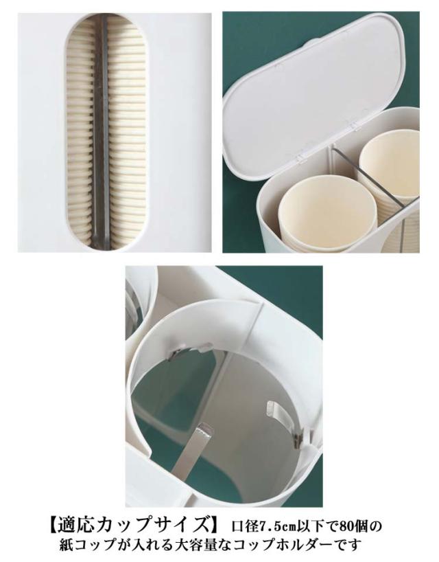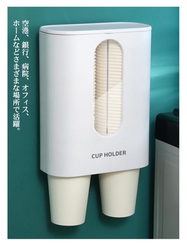 カップディスペンサー 紙コップホルダー コップディスペンサー 使い捨てコップ用ホルダー 紙コップ収納 プラコップ収納 大容量 80コップ入れ可能 おしゃれ カップスタンド 取り付け簡単 粘着テープ 壁面取り付け ウォーターサーバー用 オフィス