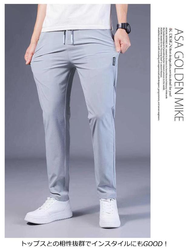 送料無料 接触冷感 テーパードパンツ メンズ 冷感パンツ パンツ ストレッチ アイスシルク アイスシルクパンツ ウエストゴム 無地 イージーパンツ アイスシルクロングパンツ ボトムス ズボン 人気 おしゃれ 春 夏 服 トップイズム