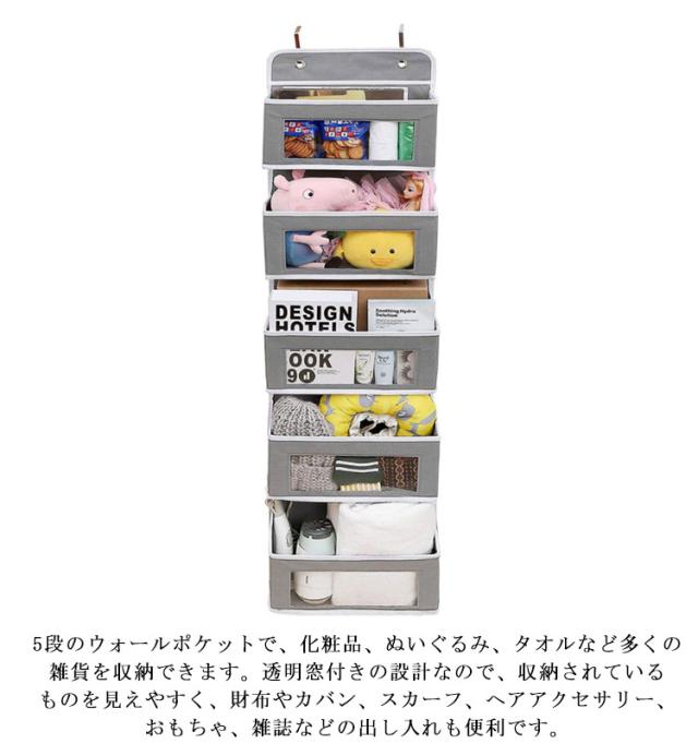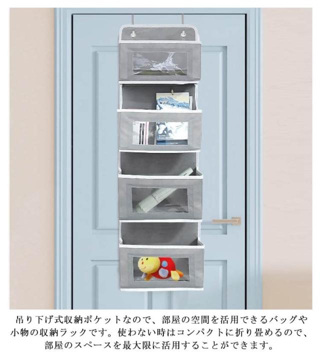ウォールポケット ドア掛け収納 4段 5段 クローゼット収納 型崩れしにくい 吊り下げ収納 大容量 折りたためる おもちゃ 帽子 靴下 衣類 収納 省スペース 取り付け簡単 おしゃれ 北欧 壁掛け収納 クリア 透明 吊り下げラック