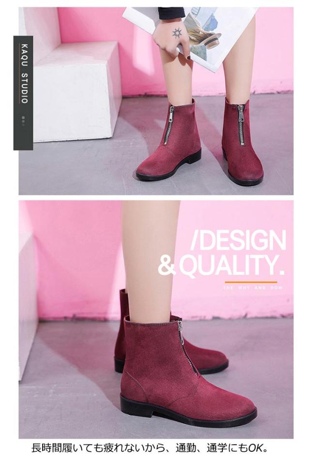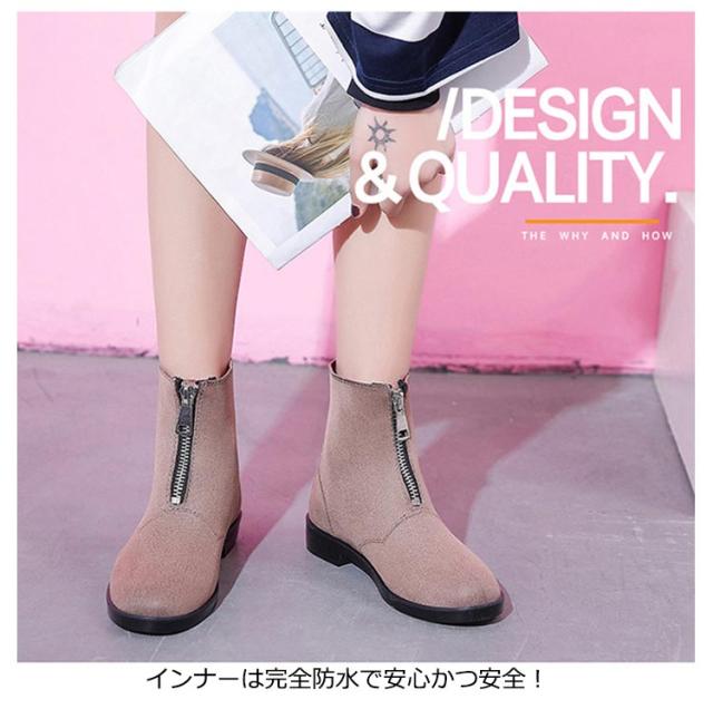 フロントジップ レインブーツ レディース ショートブーツ 防水 ショート ブーツ 歩きやすい ローヒール 履きやすい レインシューズ ブーティ おしゃれ 梅雨 雨 対策 防滑 靴 通勤 通学 23.0-25.0cm