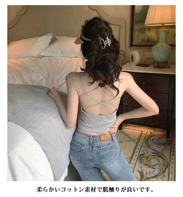 | 個性的なバッククロスデザインのレディースキャミソールです。 大きく開いたバックスタイルがセクシーで、大人可愛くオシャレに決まります☆ 柔らかいコットン素材で肌触りが良いです。 シンプルな色、デザインで、着回し力は抜群です。 | |