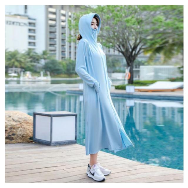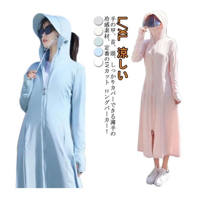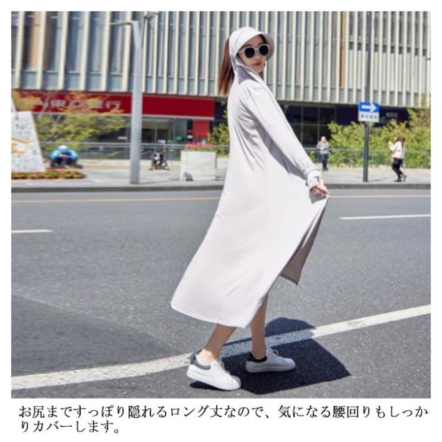 UVカット パーカー ロング丈 UVパーカー レディース UPF50+ 薄手 接触冷感 ひんやり 涼しい UV対策 ラッシュガード 長袖 フード付き ロングパーカー 吸水速乾 フェイスカバー 指穴 スポーツ 日焼け止め 夏 体型カバー 男女兼用 紫外線対策 自転車 通勤 山登り アウター