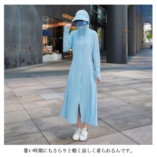 | 手の甲、首、頭、しっかりカバーできる薄手の冷感素材、定番のUVカット ロングパーカー! 大きめのツバ付きフードで頭からフェイス、首周りをガード。 利用シーンやデザインの好みに合わせて着脱していただけます。 長すぎないな着丈で、ボトムスを選ばず使い安いアイテム。 しっかりしたツバ芯付き、鼻先まであがるファスナー付きでマスクも不要。 指穴付きの袖口で手の甲、手の平もしっかりカバー。 全生地薄くて通気性抜群で速乾性も良い。軽やか素材でゆったり着心地。 お尻まですっぽり隠れるロング丈なので、気になる腰回りもしっかりカバーします。 速乾性、伸縮性に優れているので動きやすい! 暑い時期にもさらりと軽く涼しく着られるんです。 水着のコーデだけでなく、旅行、山登りなどの普段使いや、トレーニング、ランニングなどの陸上スポーツなど屋外での使用に最適なUVカットです。 フェスカバーとフード付きですので、首元までしっかり紫外線から守れ、さらに袖丈やや長めデザインロングスリーブタイプで手首もしっかりと覆えます! 薄手素材なのでコンパクトサイズにできて持ち運びにも便利なところがうれしいポイント。 自転車、通勤、通学、バイク、運転、サイクリング、旅行、登山、釣りなどのお出かけにはもちろん、ビーチや海、レージャなどのアウトドアスポーツにも大活躍です。 | |