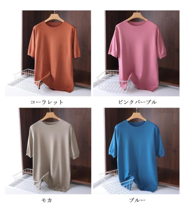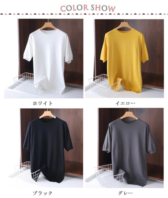トップス 半袖tシャツ 半袖 メンズ ニット ニット メンズ ニット メンズ サマーニット ニット 夏ニット ゆったり Uネック 夏服 丸首 快適 薄手 蒸し暑くない 柔らかい 無地 定番 レイヤード 送料無料 カジュアル シンプル おしゃれ tシャツ