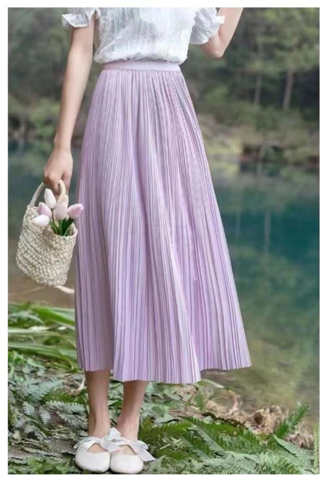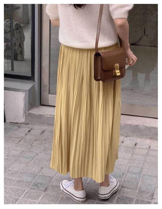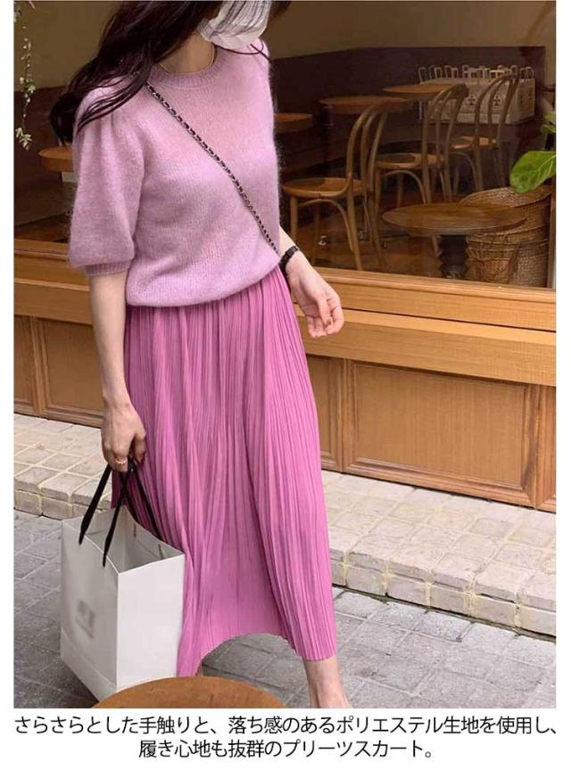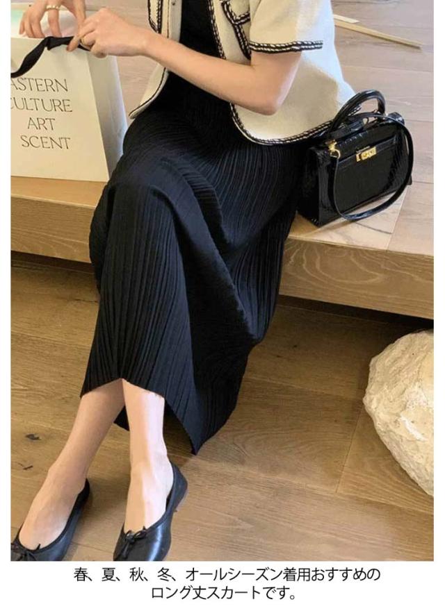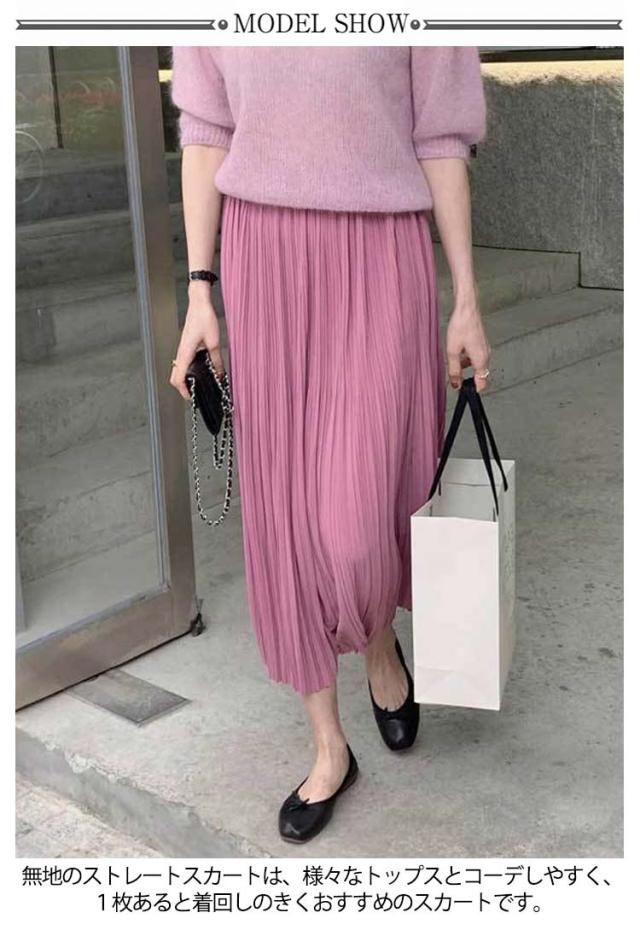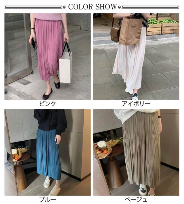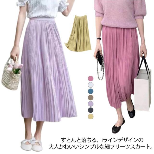 Iライン スカート 高見え レディース フェミニン 可愛い ロングスカート エレガント 体型カバー ミニプリーツ 7色 プリーツスカート ミモレ丈 大人 大人 きれいめ 韓国風 20代 30代 40代 50代 無地 細プリーツ