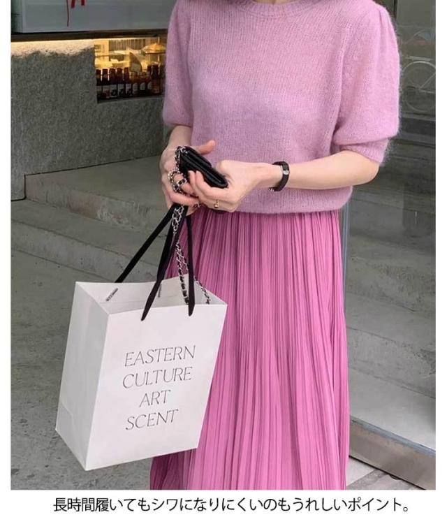 | すとんと落ちる、iラインデザインの大人かわいいシンプルな細プリーツスカート。 無地のストレートスカートは、様々なトップスとコーデしやすく、1枚あると着回しのきくおすすめのスカートです。 さらさらとした手触りと、落ち感のあるポリエステル生地を使用し、履き心地も抜群のプリーツスカート。 長時間履いてもシワになりにくいのもうれしいポイント。 iラインのペンシルスカートは、縦ラインを強調し、スタイルよく見せてくれる優秀ボトムです。 ハイウエストで履けるスカートで、スタイルアップが狙えます。 春、夏、秋、冬、オールシーズン着用おすすめのロング丈スカートです。 | |