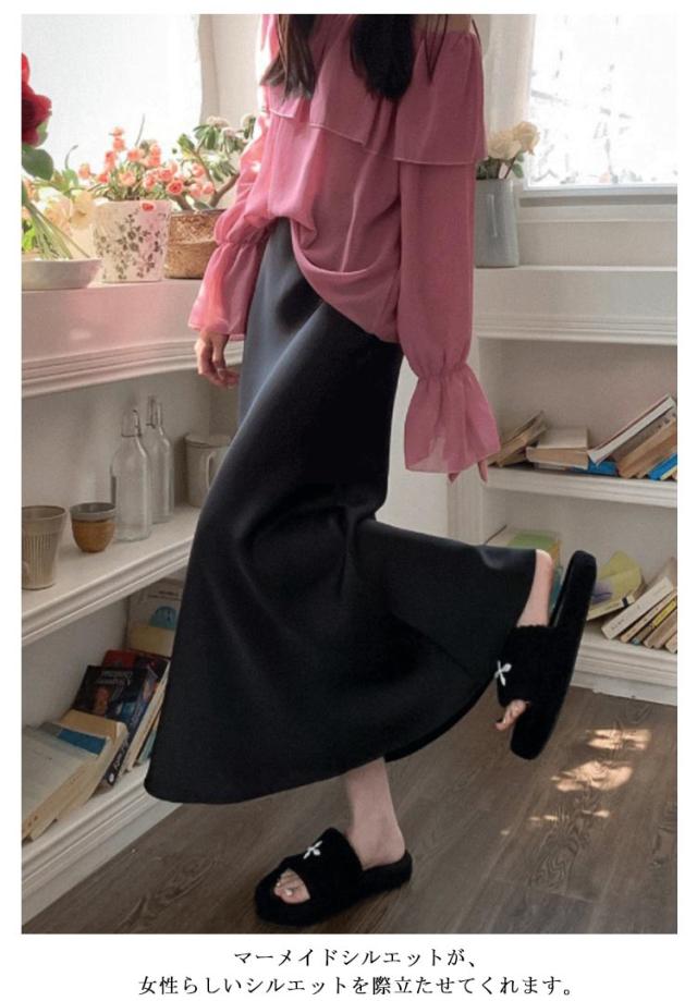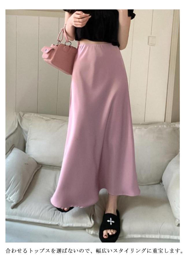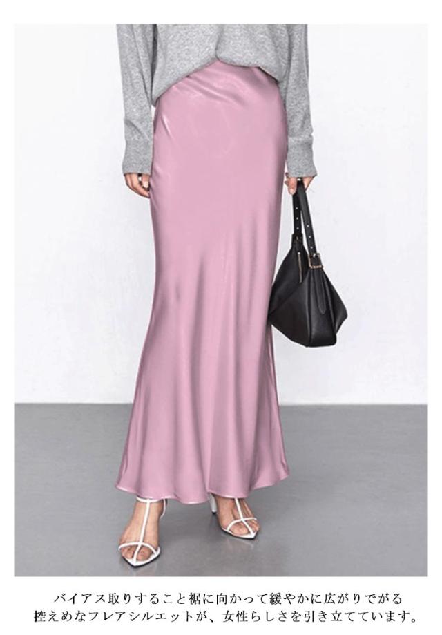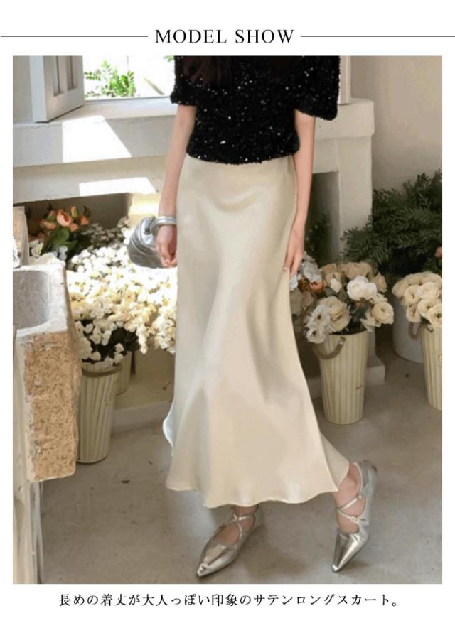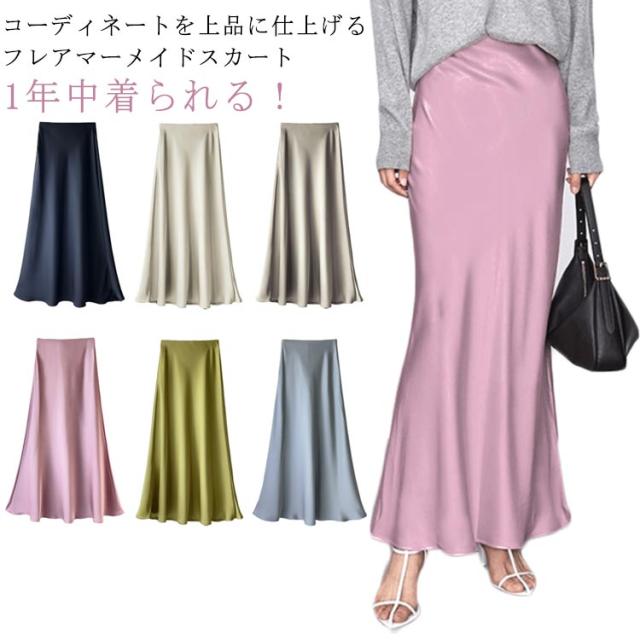 きれいめ とろみ スカート エレガント マーメイドスカート ロングスカート 落ち感 フレア 光沢感 マーメイド マキシ丈 上品 大人 韓国風 フェミニン 通勤 涼感 冷感 涼感 レディース 体型カバー 20代 30代 40代 50代 サテン