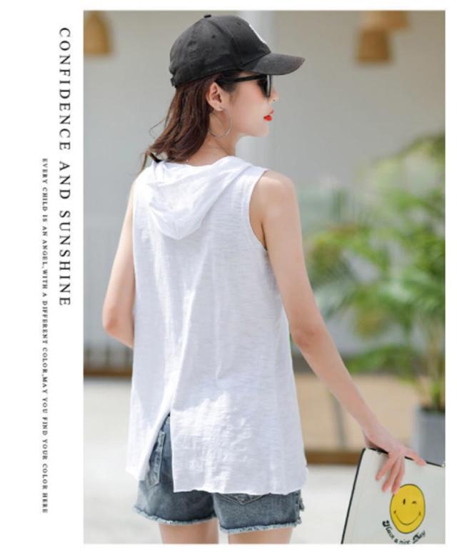袖なし レディース タンクトップ フード付き ベスト 春 キャミソール 夏 フード付きtシャツ レイヤード カットソー トップス 吸汗速乾 ノースリーブパーカー ジレ ひんやり 薄手 インナー プルオーバー スウェット 着痩せ お洒落 カジュアル 可愛い 大人 秋 夏