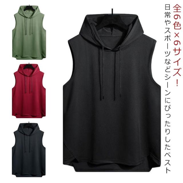 フード付き ひんやり メンズ 速乾 ノースリーブ カジュアル レディース 吸汗速乾 夏 スウェット tシャツ タンクトップ ノースリーブ 部屋着 ベスト ルームウェア パーカー プルオーバー ストレッチ 涼しい トップス 涼感 接触冷感 春 夏 秋 スウェット サマーベスト