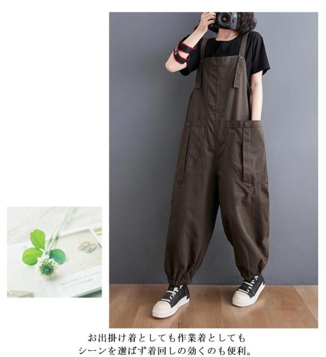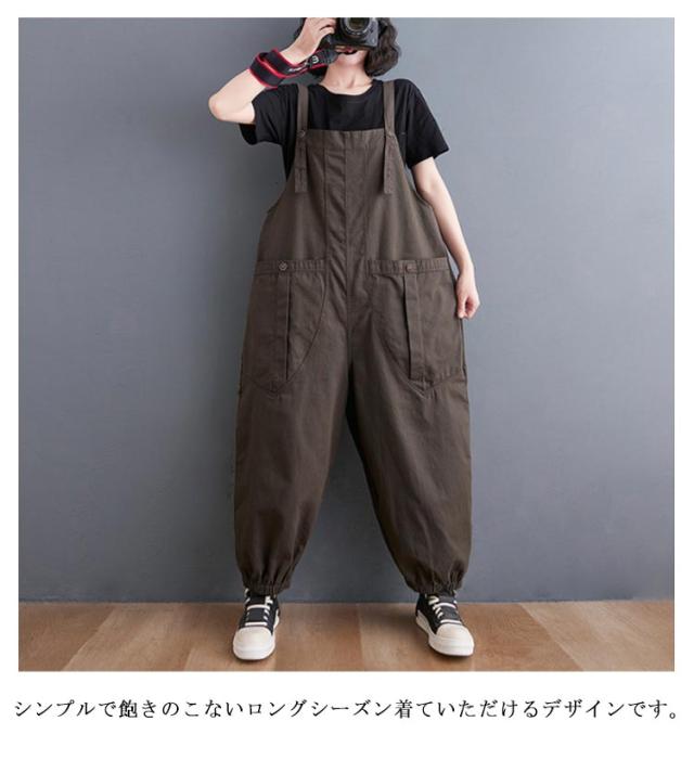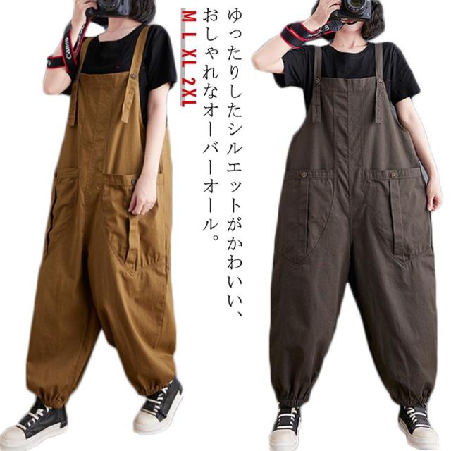 サロペット ゆったり 作業ズボン つなぎ 大きいサイズ ビッグシルエット ワイドパンツ パンツ ワイド オーバーオール ワイドパンツ パンツ ボトムス 秋 体型カバー ロング 無地 シンプル 春 夏 オールインワン 冬 ワークパンツ 作業服 カジュアル M L XL レディース
