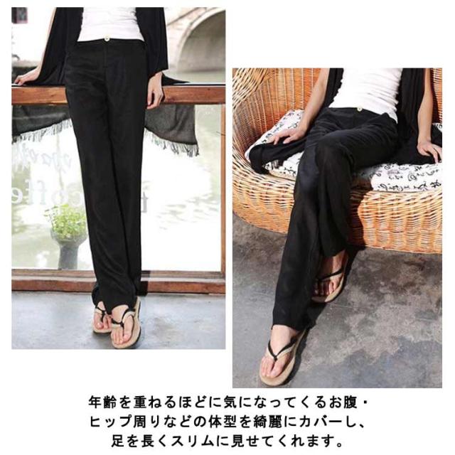 薄手 カジュアル おしゃれ 美脚 リラックス ガウチョパンツ レディース ベイカーパンツ 爽やか ロングパンツ ウエストゴム くすみカラー ギフト 美脚シルエット スリム ひんやり 涼しい 体型カバー ベルボトム 大きいサイズ 母の日 ワイドパンツ