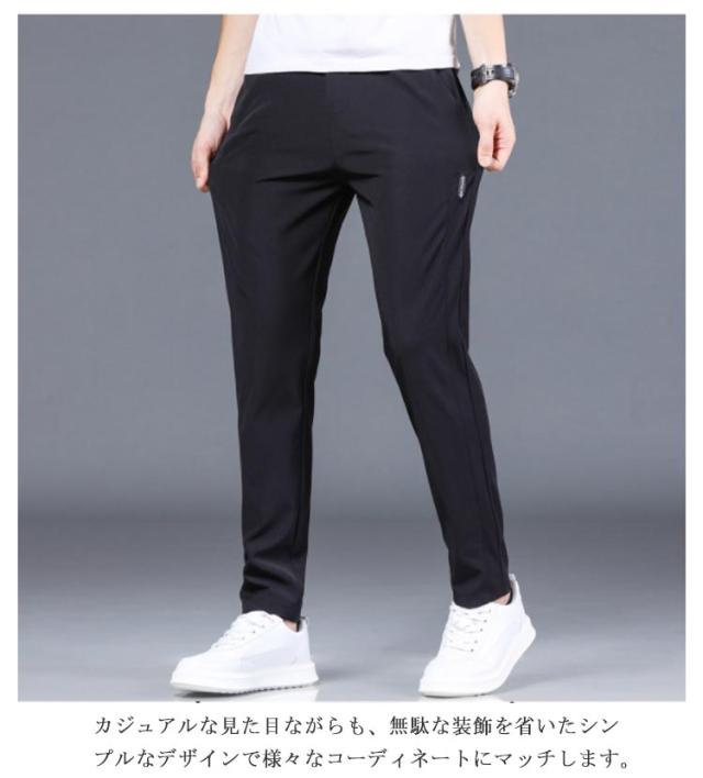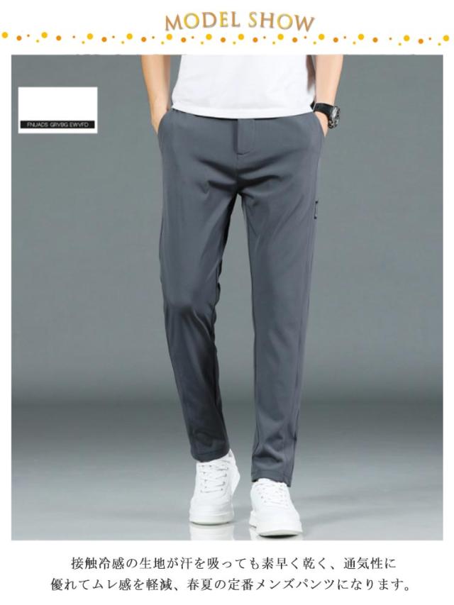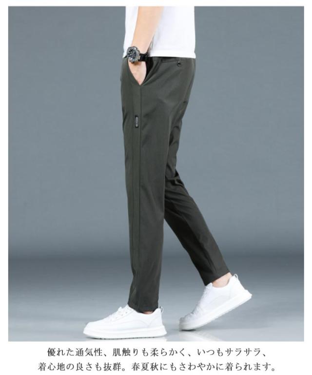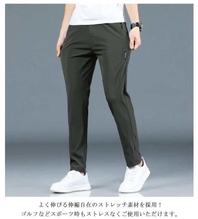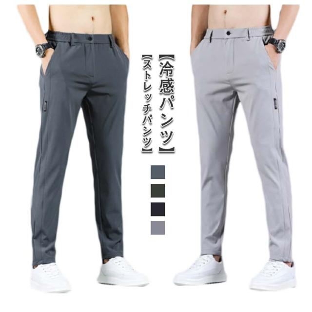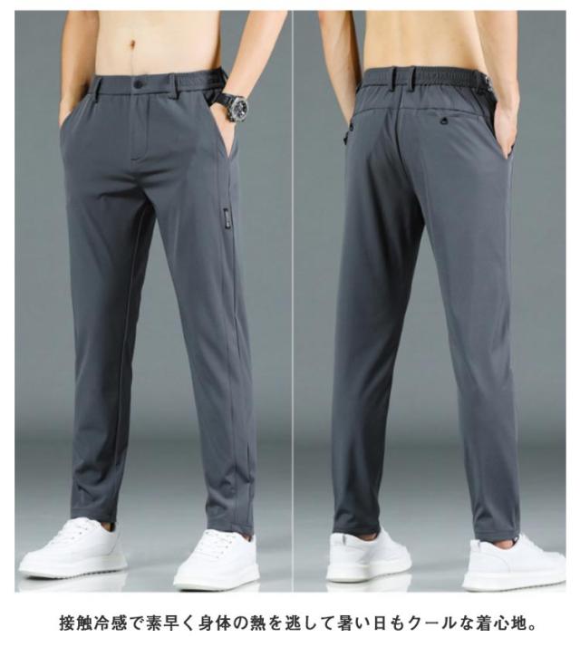 アイスシルクパンツ 接触冷感 長ズボン 軽量 無地 ウェストゴム 速乾 メンズ ストレッチパンツ トレーニングパンツ 涼しい 夏 春 秋 ゴルフパンツ ゴルフウェア スポーツパンツ ロングパンツ