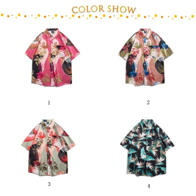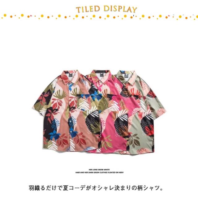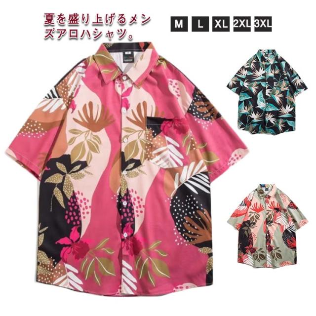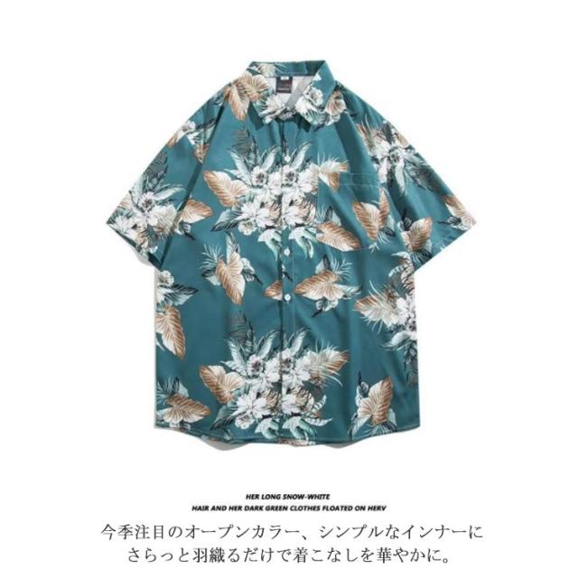 オープンカラー リゾート 半袖シャツ サーフ系 半袖シャツ 花柄 ハワイアン 夏 夏服 開襟シャツ 柄シャツ メンズ シャツ ボタニカル アロハシャツ 海 ビーチ ペア 父の日 プレゼント ゆったり