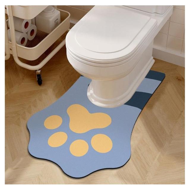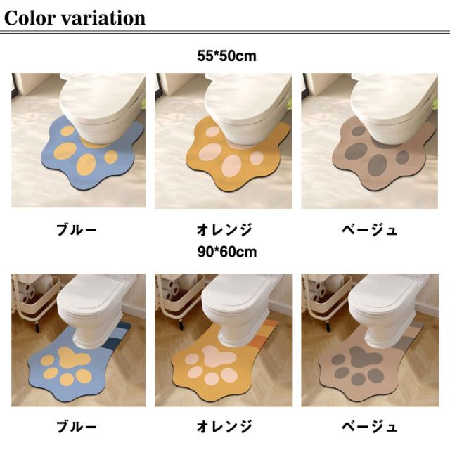 ワイド ロング トイレ 大判 ロング 吸水 オレンジ かわいい マット 耳長 おしゃれ 肉球柄 柔らかい 拭ける 裾ロング 洗える 洗濯 滑り止め ずれない トイレマット インテリア ブルー 60*90cm ベージュ ネコ トイレマット
