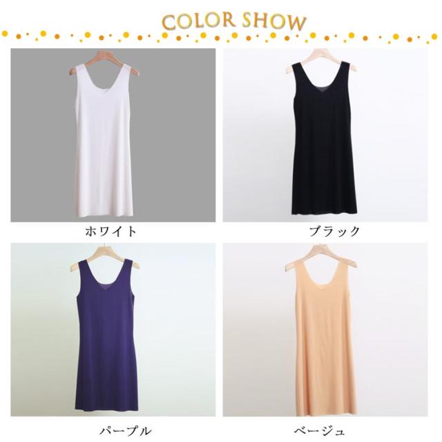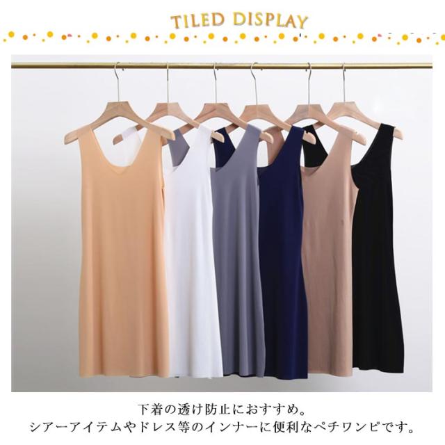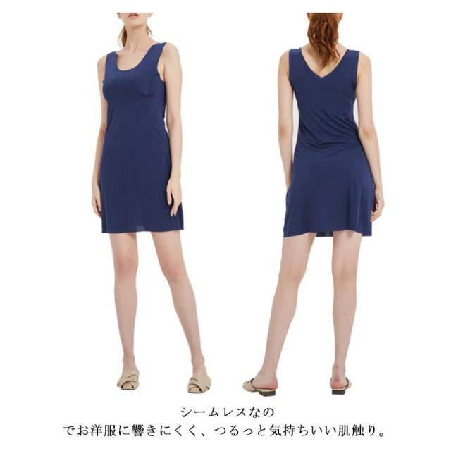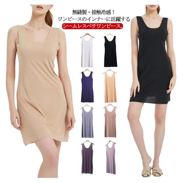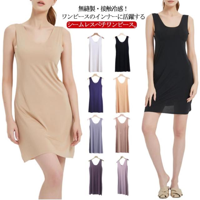 シームレス 透けない ペチコート インナー レディース ひんやり 響かない シンプル インナーワンピース 透け防止 涼しい ノースリーブ 無縫製 ペチワンピース ペチワンピ ワンピース レイヤード 下着 肌着 スリップ 吸汗速乾 春夏 汗取り 女性 接触冷感