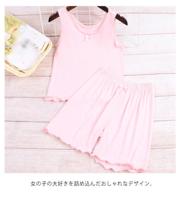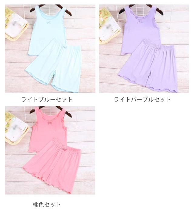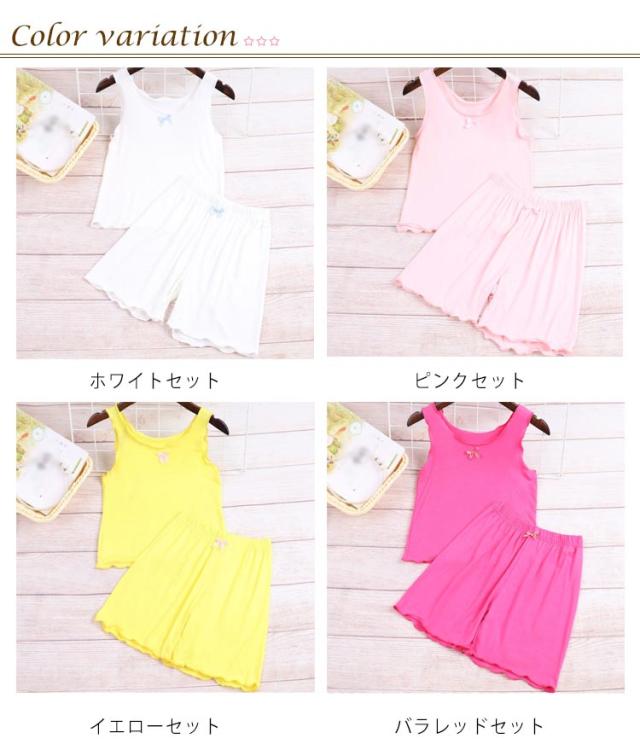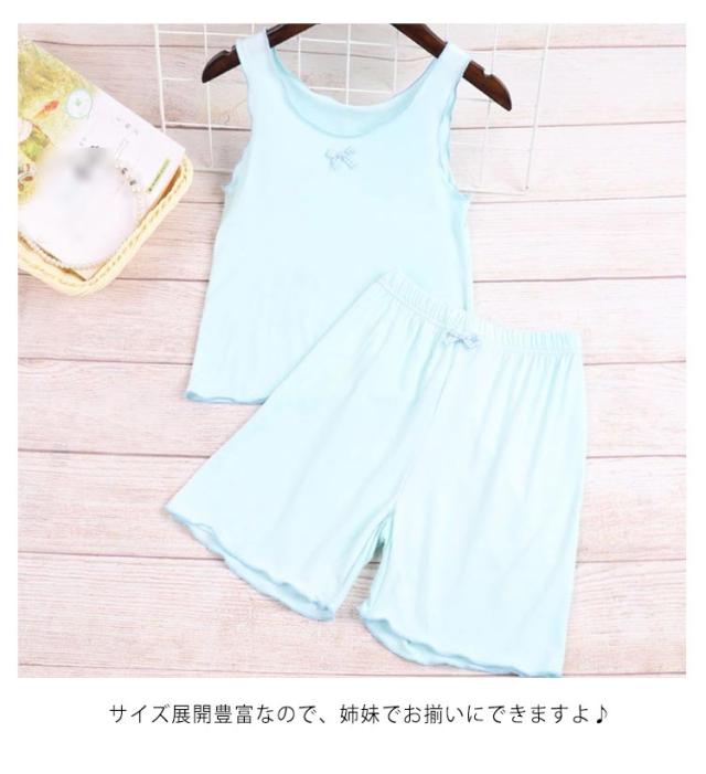 夏 接触冷感 ショートパンツ 女の子 キッズ 子供服 快適 春 女児 ルームウェア キャミソール 無地 女の子 部屋着 ひんやり パジャマ 上下セット ゆったり ウエストゴム 短パン 快適 可愛い 姉妹 お揃い フリル 小学生 ギフト ガールズ