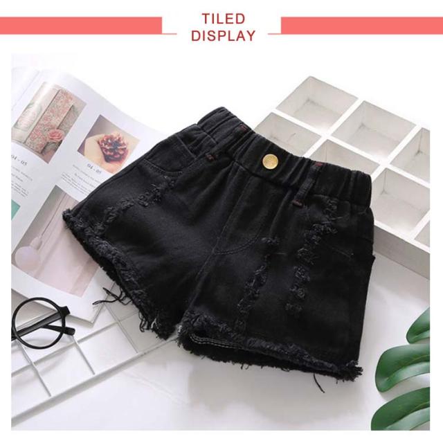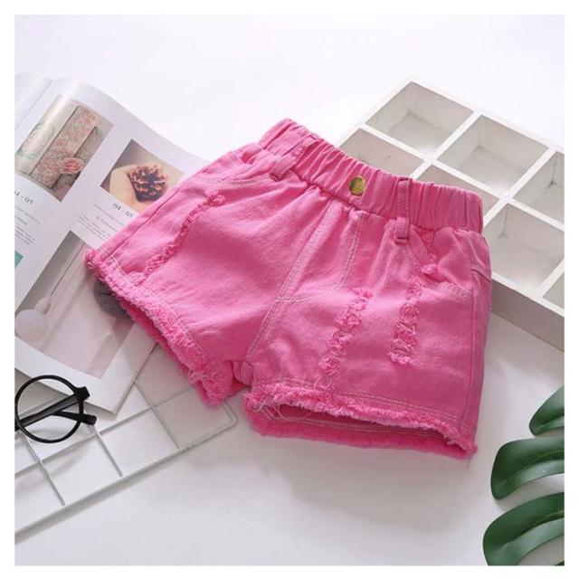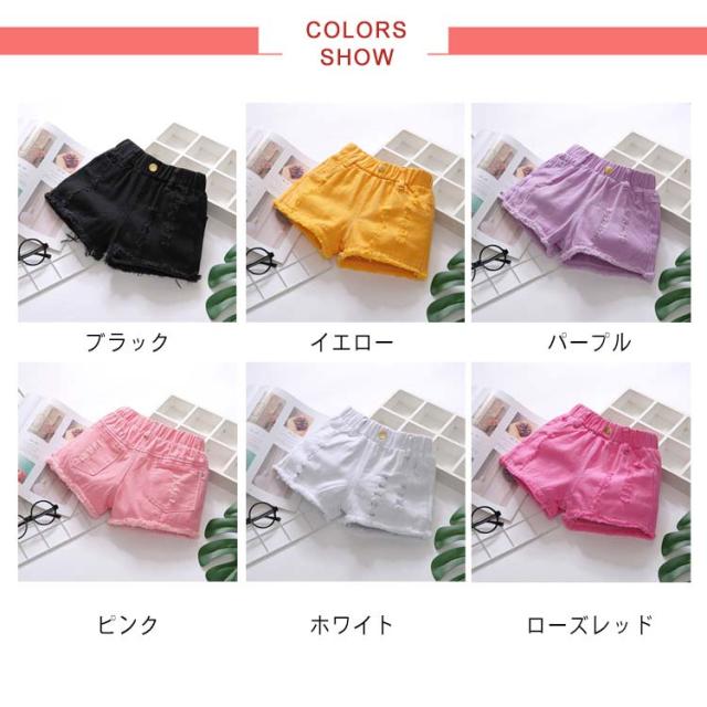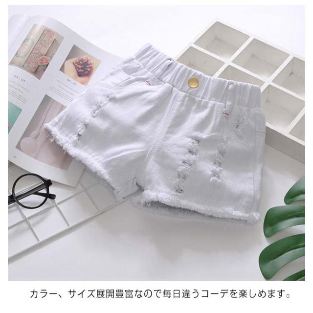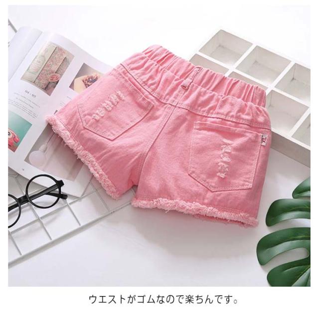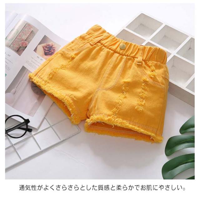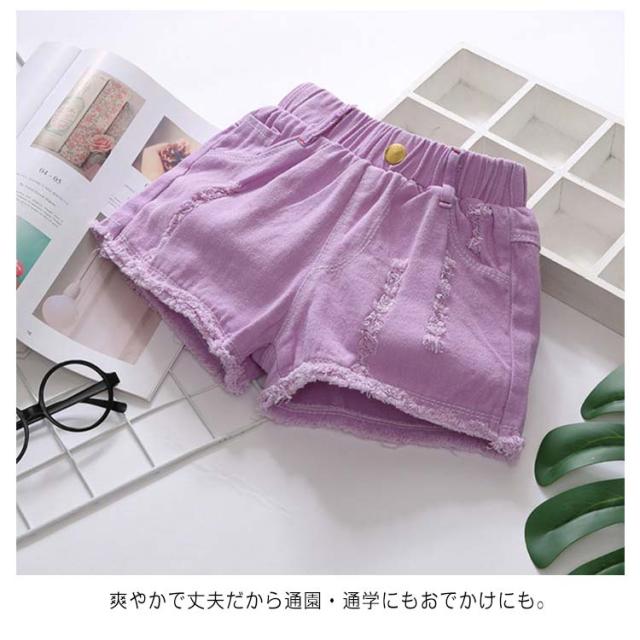 ショートパンツ デニムパンツ ボトムス 女の子 子供服 夏 ハーフパンツ 可愛い 送料無料 ジュニア 半ズボン ウエストゴム ダメージ ジーンズ 裾フリンジ 無地 デニム