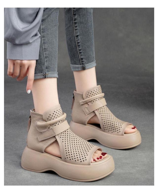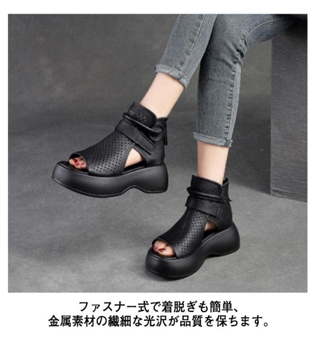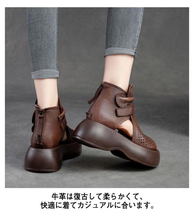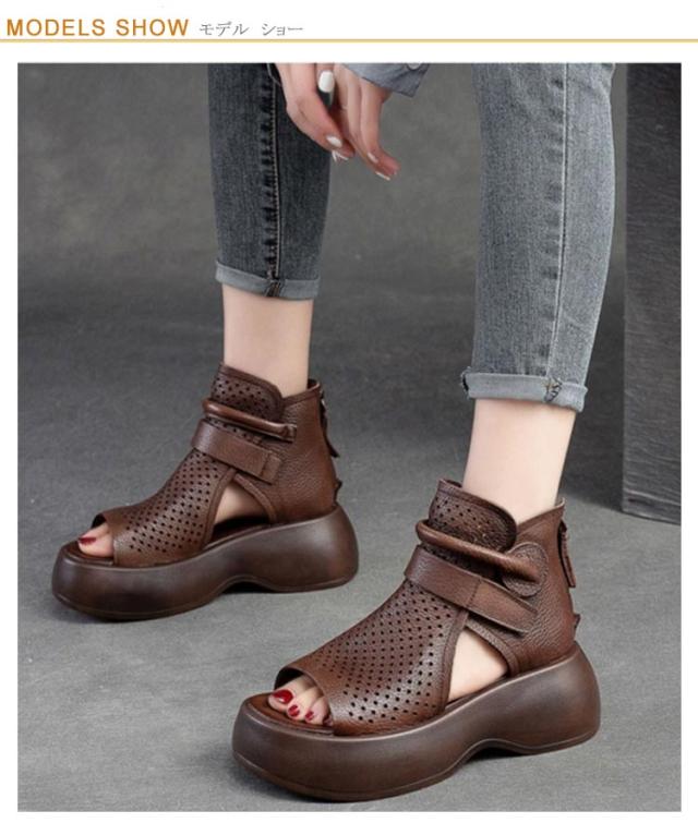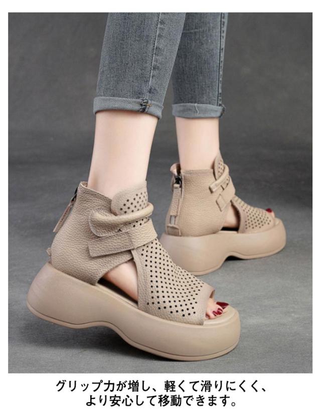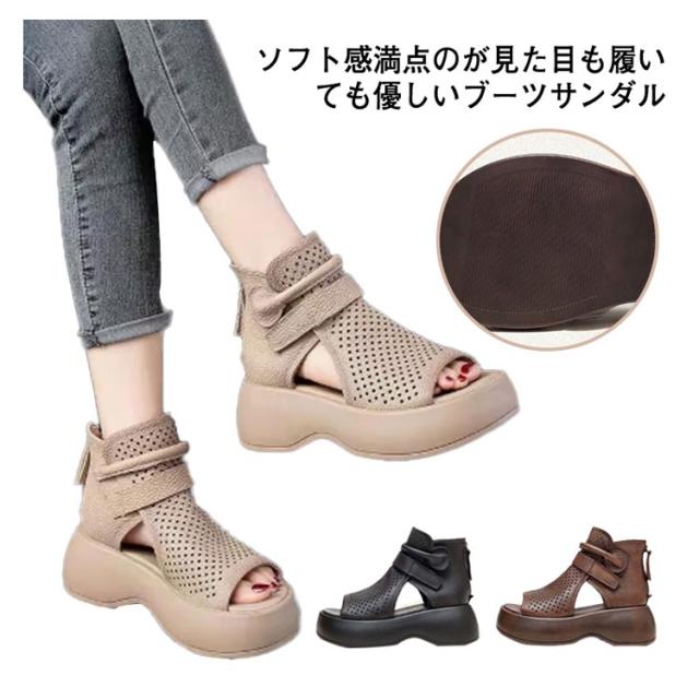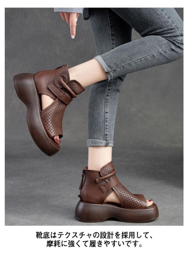 メッシュ 歩きやすい サマーブーツ 厚底サンダル サンダル 本革 送料無料 本革 牛革 厚底 シューズ 夏 女性 通気 グラディエーター コンフォートサンダル トレロ ブーツサンダル 30代 レディース