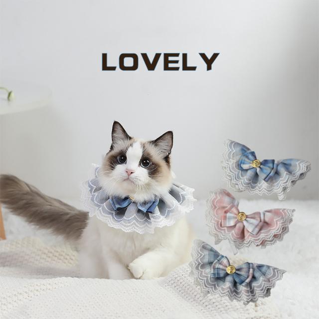 ペットの装飾首輪 Jk 格子縞のレースの蝶ネクタイネックレススカーフ唾液タオルペットの首のアクセサリー