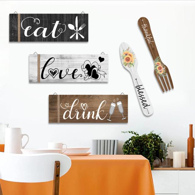 5 個のキッチン木製看板壁の装飾ナイフフォーク形のレストランリストダイニングルームビストロエリア