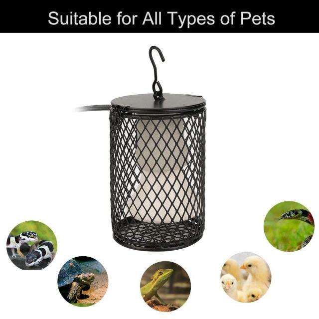 安全保護: ランプ ガード ケージを使用すると、ペットの火傷を効果的に防ぐことができます。噛み付き防止鉄パイプ付きで、ペットが電線を噛んで感電するのを防ぎます。