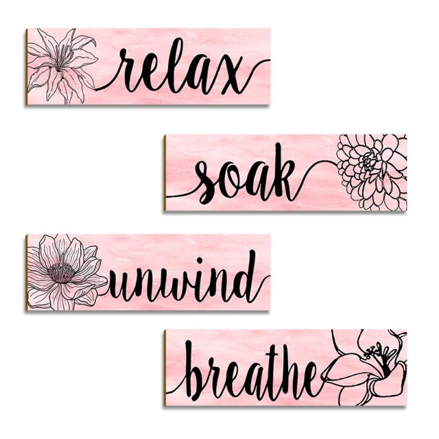 4 個素朴な花ヴィンテージ木製ハンギングサイン肥厚壁アートリビングルームのバスルームの装飾