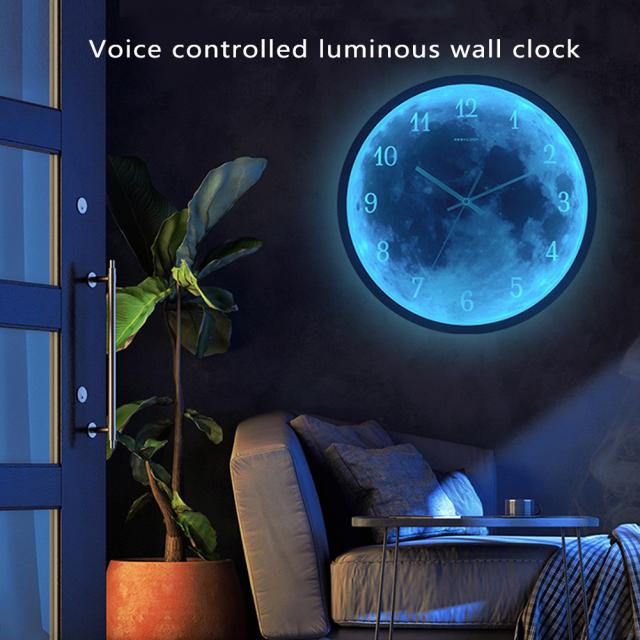 メタルムーンパターン背景音声制御 Led 発光壁時計サイレントムーブメントモダンなミニマリストスタイルのリビングルームのベッドルームの装飾