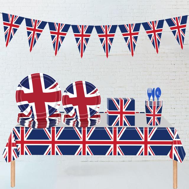 英国旗パターン紙コッププレート使い捨てテーブルクロス紙ナプキン食器セットテーマパーティー用品テーブルデコレーション