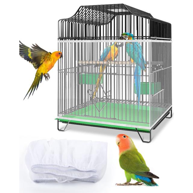 オウム鳥かごカバー調節可能なユニバーサル通気性ストレッチメッシュスカート防塵ネットカバーケージガード