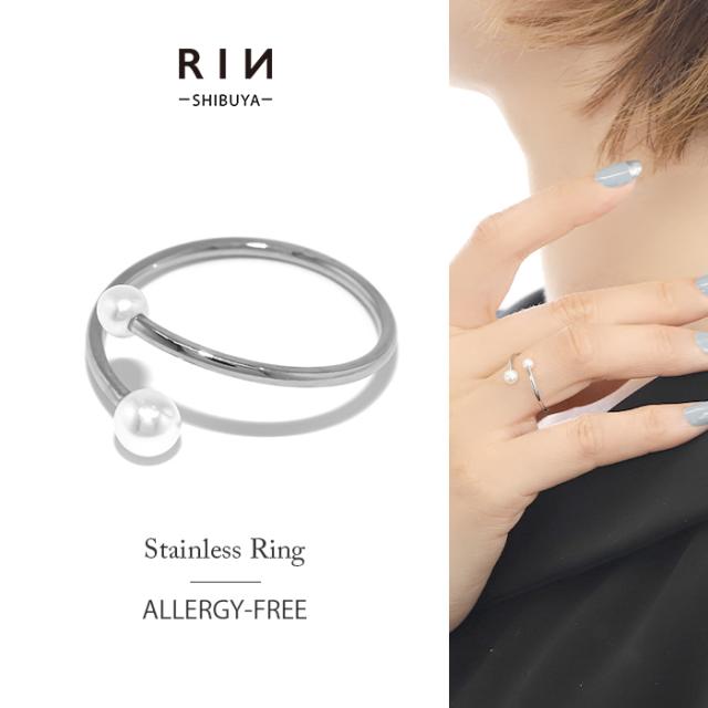 指輪 リング 11号 キレイ シンプル 巻きつけ パール 上品 金属アレルギー対応 サージカルステンレス フォークリング オープンリング ボディーピアス 軟骨 ピアス ステンレス 0アクセサリー おすすめ ポイント消化 body Pierce 凛 RIN ボディピアス専門店 りん リング0019