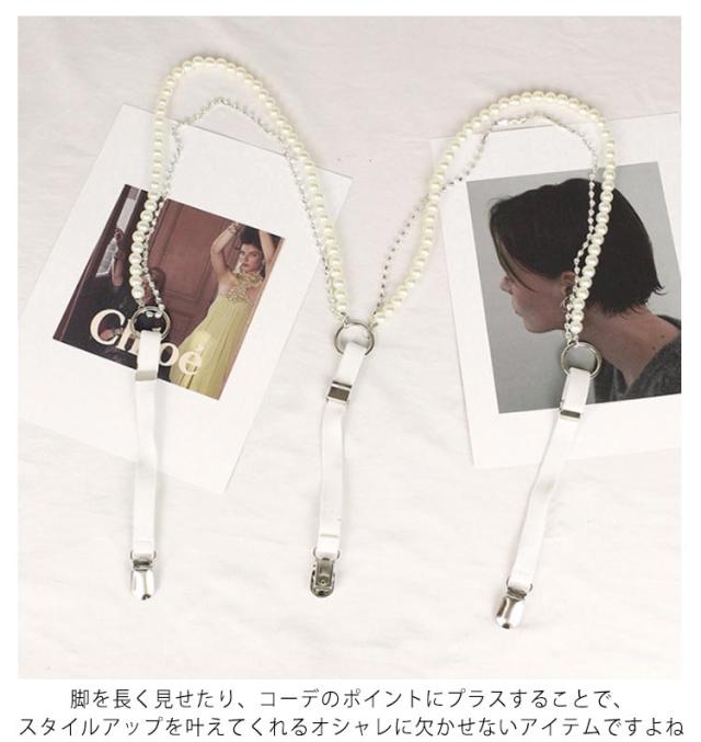 サスペンダー パールサスペンダー レディース カジュアル 吊りバンド 吊りパン ベルト パールベルト サスペンダー ズボン吊り スカート吊りバンド 結婚式 小物 フォーマル おしゃれ フェミニン 可愛い カジュアル ブラック ホワイト 黒 白