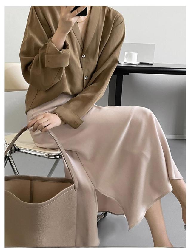 | 光沢のあるサテン生地を使用した程よく落ち感のあるフレアスカート。 長めの着丈が大人っぽい印象のサテンロングスカート。マキシ丈なので体系カバーも◎ ウエストフロントはすっきりと、後ろはウエストゴムなので着脱しやすく、ストレスのない着心地です。 バイアス取りすること裾に向かって緩やかに広がりでがる控えめなフレアシルエットが、女性らしさを引き立てています。 合わせるトップスを選ばないので、幅広いスタイリングに重宝します。 サラリとしたサテン生地で、ロングシーズン着用可能。 | |
