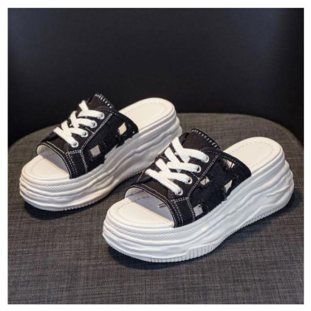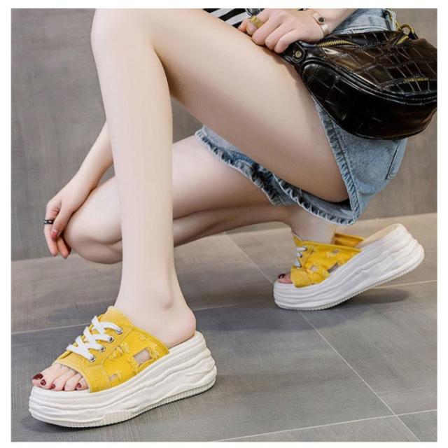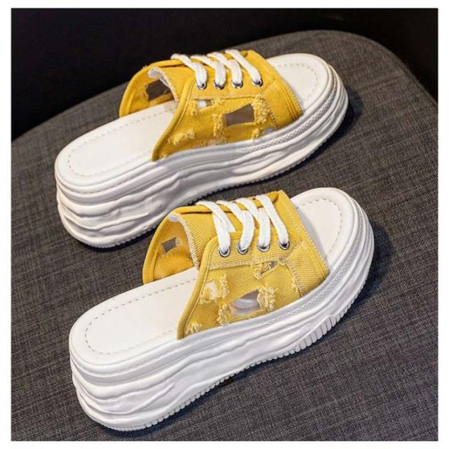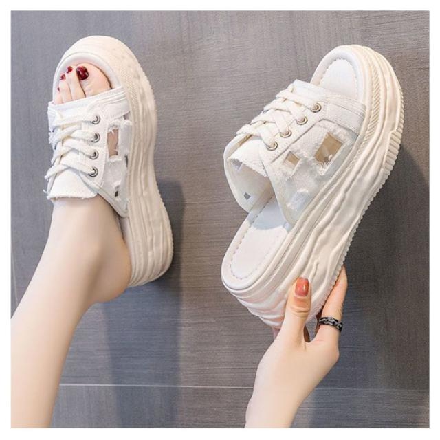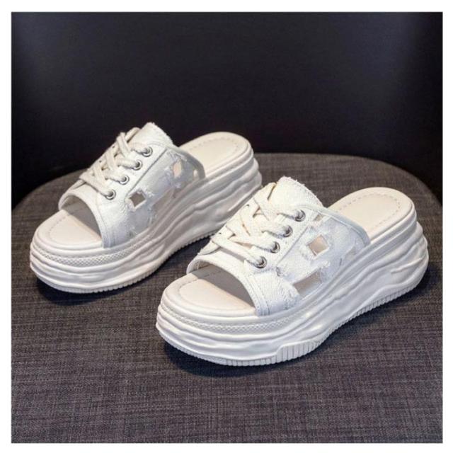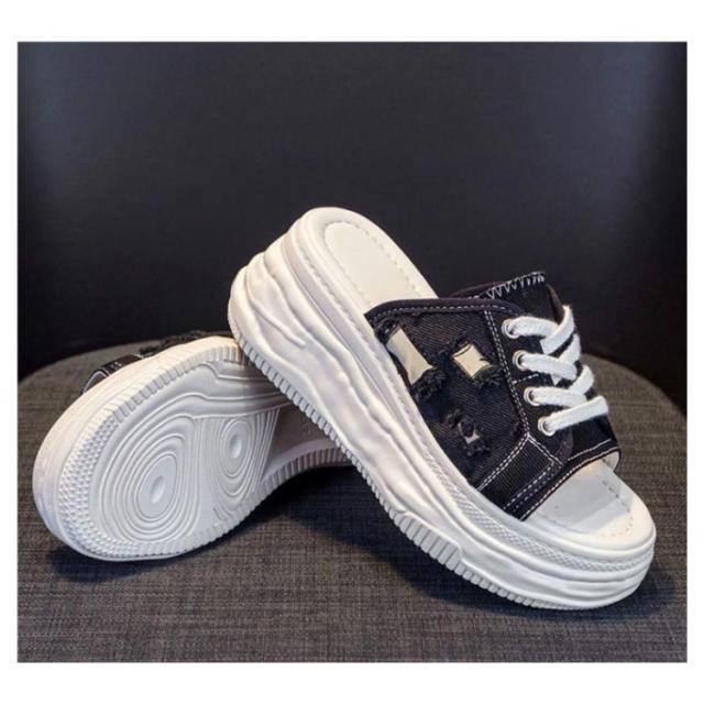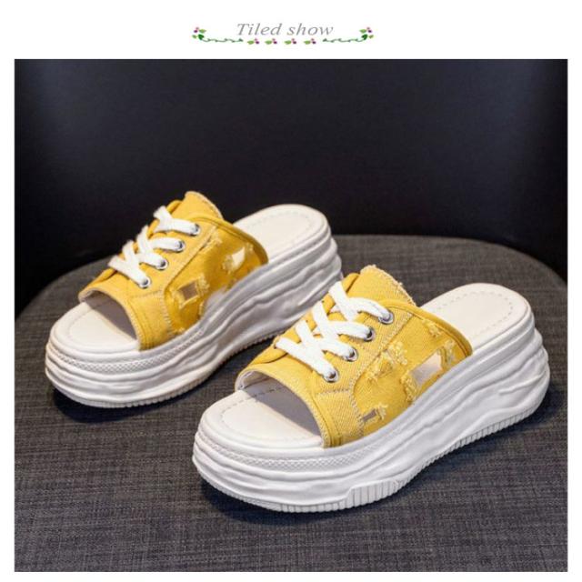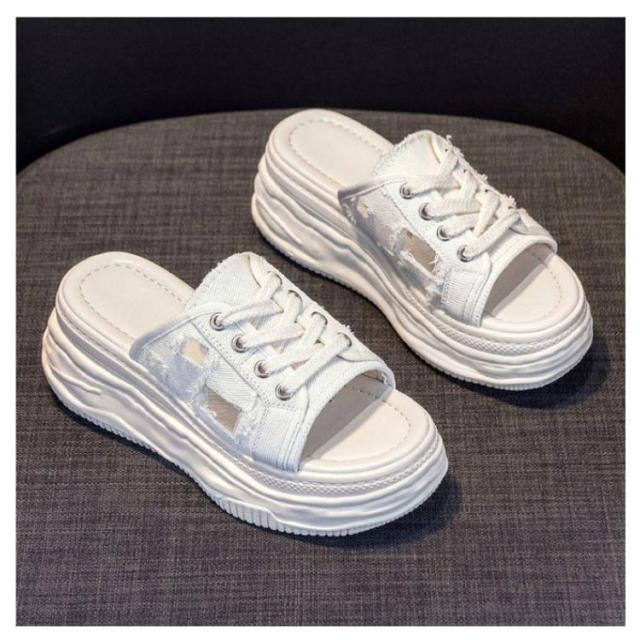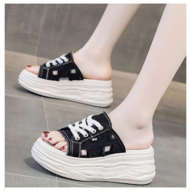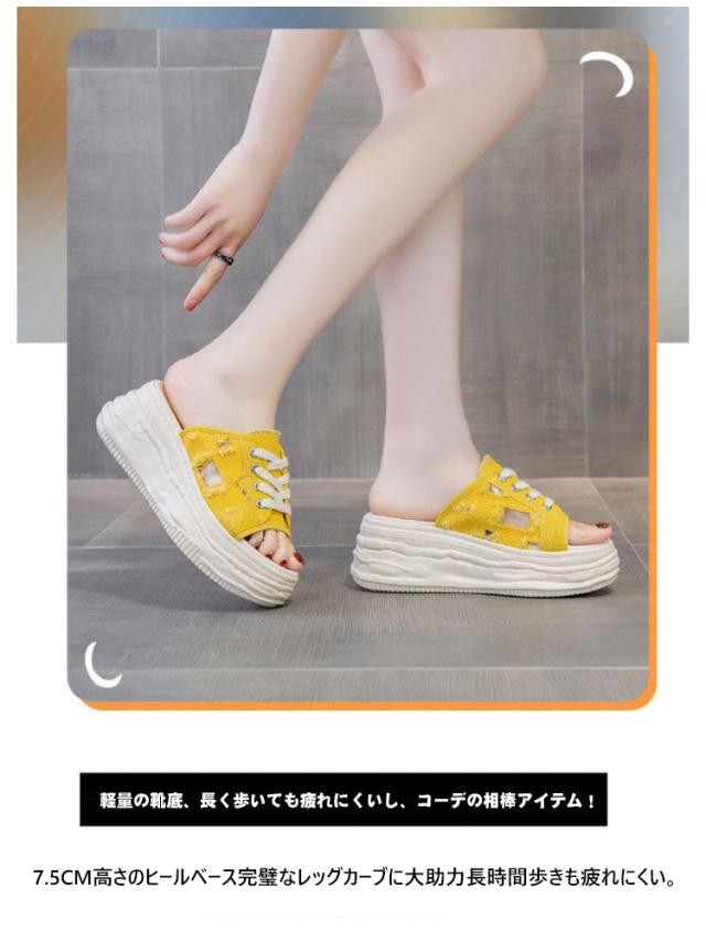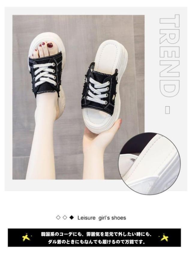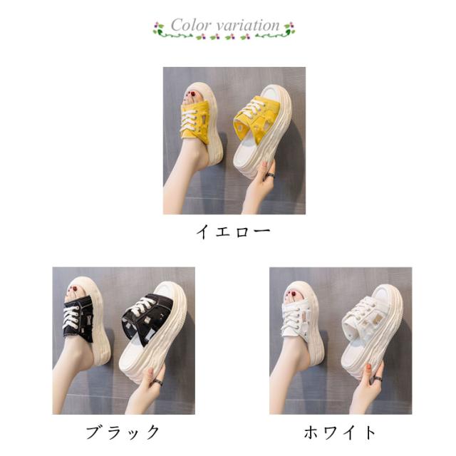 厚底サンダル 6.5cm 身長アップ スニーカー スポーツサンダル ミュール レースアップ カジュアル ビーチサンダル プラットフォーム スニーカー 厚底 サボサンダル ミュールサンダル スリッポン キャンバス 履きやすい 婦人靴