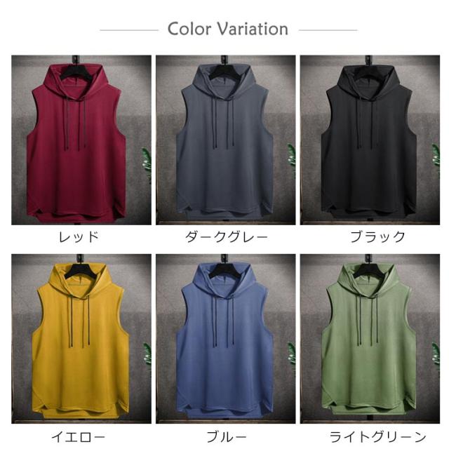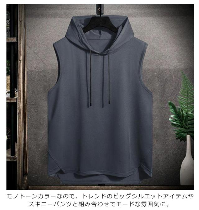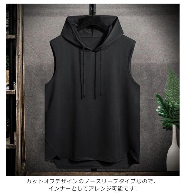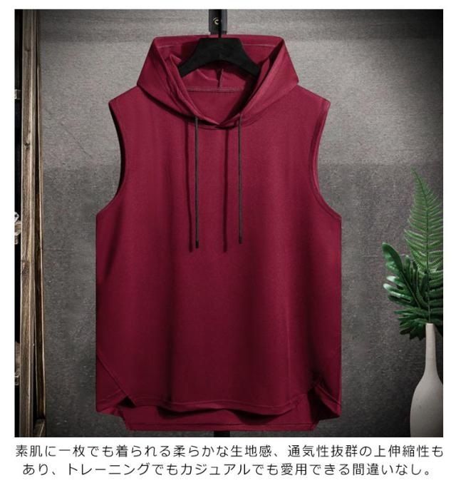 ベスト トップス メンズ フード付き パーカー サマーベスト 速乾 ノースリーブ 夏 レディース スウェット タンクトップ ノースリーブ 吸汗速乾 部屋着 ルームウェア tシャツ プルオーバー ストレッチ 涼しい ひんやり 涼感 接触冷感 春 夏 秋 カジュアル ゆったり 送料無料