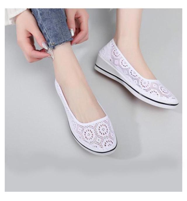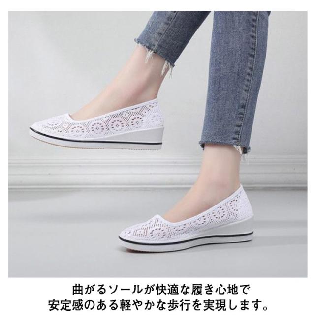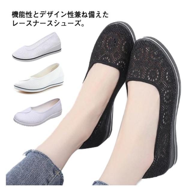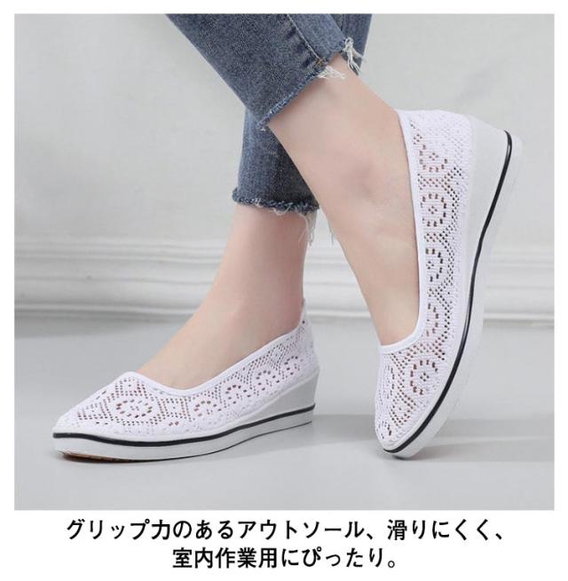 きれいめ ナースシューズ ホワイト レース パンプス スリッポン ウェッジソール 立ち仕事 看護婦 シューズ メッシュ 靴 蒸れない 看護師 夏 涼しい レディース サンダル 仕事現場 スリッポン 脱げない 軽量