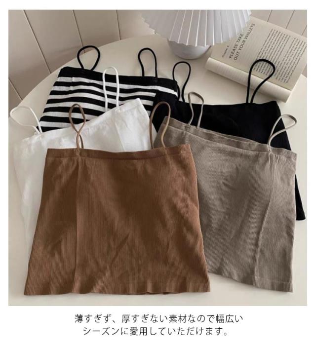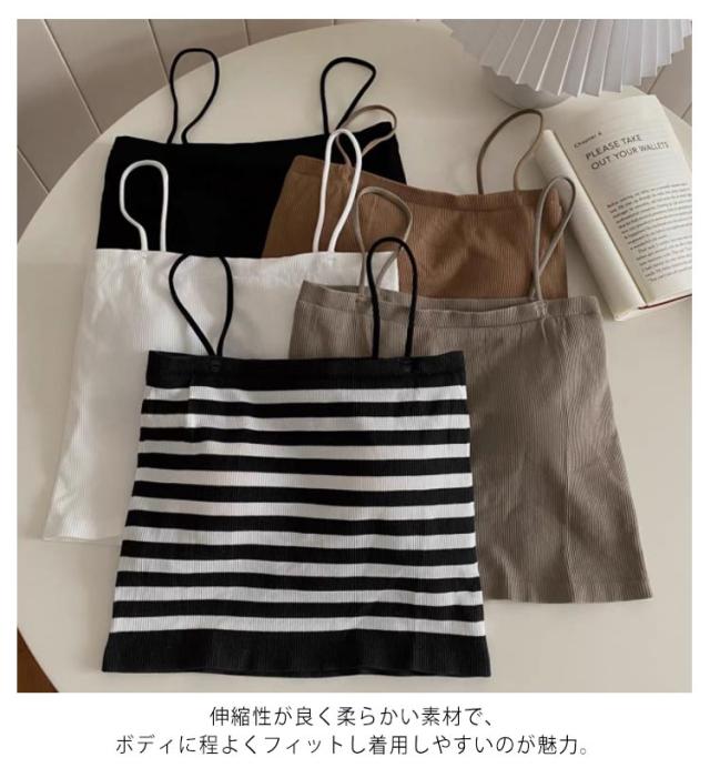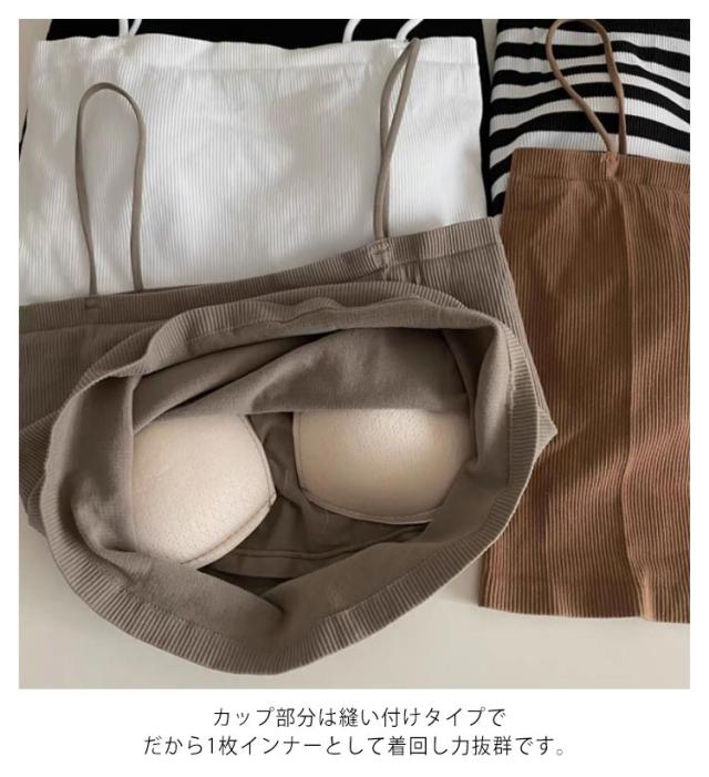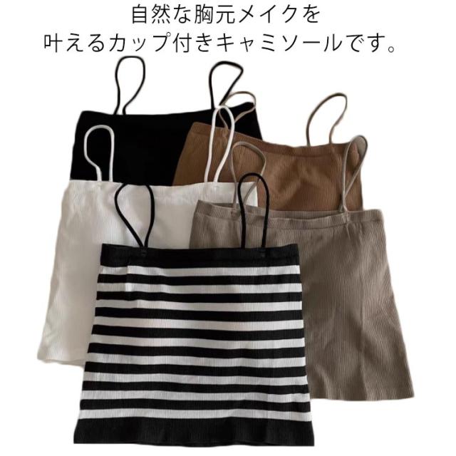 カップ付きキャミソール カップ付き キャミソール インナー リブ ノンワイヤー ブラトップ キャミ レディース 締め付けない ホワイト ブラック グレー キャラメル ボーダー 送料無料