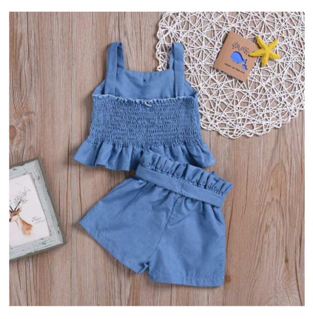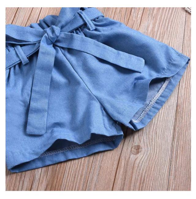 デニム セットアップ キッズ 女の子 2点セット ジーンズ ペプラム 上下セット ワイドパンツ ハーフパンツ ノースリーブ キャミソール タンクトップ デニム半ズボン ゆったり こども 可愛い きれいめ ウェストリボン 80cm 90cm 100cm 110cm 120cm 130cm