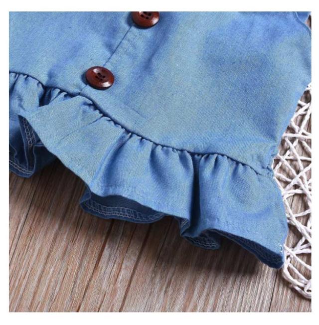 | 夏にピッタリキッズ用デニム上下セット。 ペプラムデザインはかわいいポイント! ボトムがウエストゴム仕様なのでストレスフリーな履き心地。 ウエスト可愛いリボン付き、肌触り感優しい綿混素材なので快適な履き心地。 | |