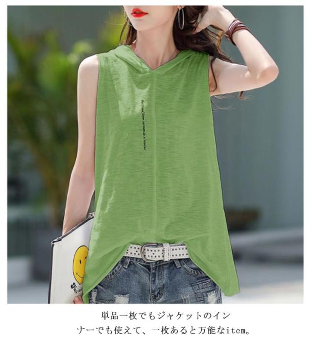 ノースリーブパーカー フード付き 夏 タンクトップ ベスト レディース キャミソール ジレ フード付きtシャツ 袖なし カットソー トップス 吸汗速乾 レイヤード ひんやり 薄手 インナー プルオーバー スウェット 着痩せ お洒落 カジュアル 可愛い 大人 春 夏 秋 送料無料