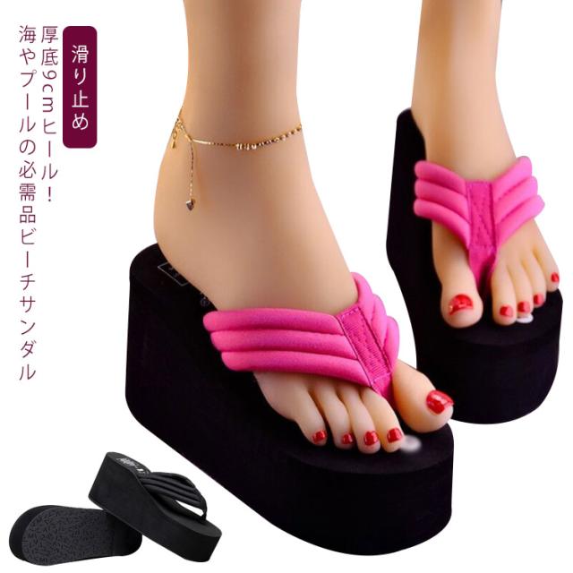 ビーチサンダル レディース 厚底 9センチヒール トングサンダル 夏サンダル 厚底サンダル 無地 軽い サンダル 歩きやすい ヒール 海 痛くない 女の子 女性用 履き心地 おしゃれ かわいい 軽量 滑り止め 可愛い 夏 ビーサン 送料無料