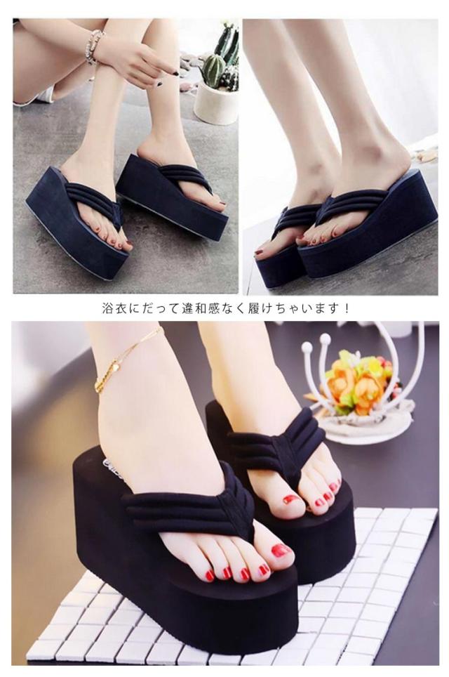 | 厚底9cmヒール!海やプールの必需品ビーチサンダル サッと履け厚底ソールなのに安定感のある履き心地! ボリューム感のあるソールでスタイルアップも。 コーデ次第でキレイめにもカジュアルにも 履きこなせるお洒落なデザイン 海や プールに、デートから 普段使いまで、幅広く活躍してくれて 浴衣にだって違和感なく履けちゃいます! | |