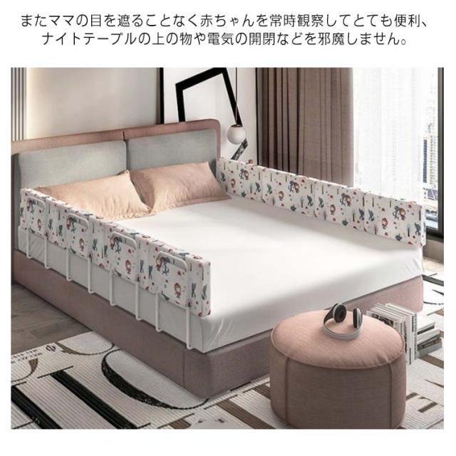 | 【落下防止】赤ちゃんがベッドから転落するのを防ぐのだけでなく布団を蹴飛ばすのも防げます。またママの目を遮ることなく赤ちゃんを常時観察してとても便利、ナイトテーブルの上の物や電気の開閉などを邪魔しません。 【高品質・安全素材】最適な生地と無添加、無臭、安全な素材を使用し、お母さんが安心できるベッドフェンス。しっかりと固定され、頑丈な構造になっているため、お子様がベッドから落ちたり、寝具から滑り落ちたり、蹴ったりするのを防ぐのに最適です。 【高さ自由に調節】実際のニーズにより、クッションの高さを調整することができて、マットレスは薄くても厚くても、ご安心使用いただけます。ベッドフェンスは様々な形に組み合わせることができます。 【耐久性あり】スチールは上手で耐性のある素材で作られたから、ベッドに置くだけで簡単に設置ができます。シンプルなデザインで圧迫感がなく、快適な気分になり親にオススメです。一年中に適用。 【組み立て・お手入れ簡単】取り付けはとても簡単で、マットレスの下に差し込むだけで簡単設置ができます。ママ一人でも大丈夫です。使わない時には引き下げて簡単に収納できます。お子さまのお世話をする際に邪魔になりません。 フェンスの布製カバーは取り外し可能で、お手入れができます。 | |