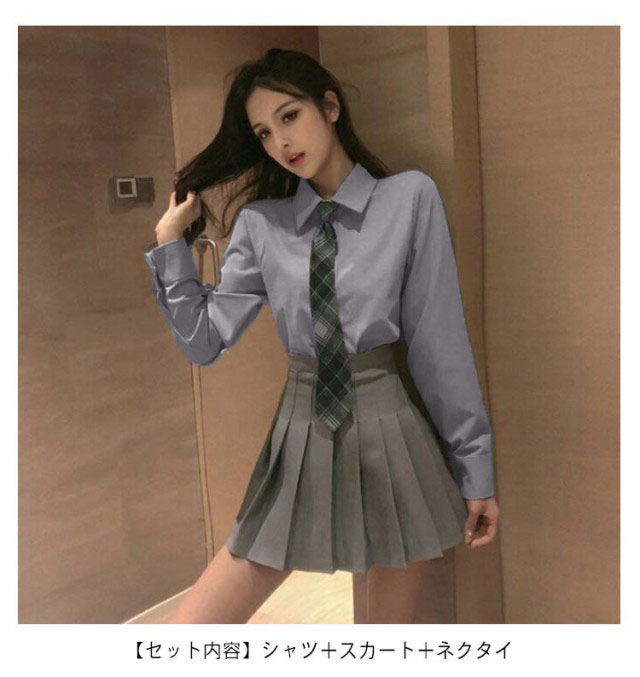 上下セット 韓国 制服 シャツ+スカート+ネクタイ 女の子 スクール制服 スーツ 韓国制服 制服 学生服 高校生 女子高校生 セットアップ シャツ 女子高校生 フォーマル セット 3点セット 半袖 長袖 スカートスーツ 業式 送料無料