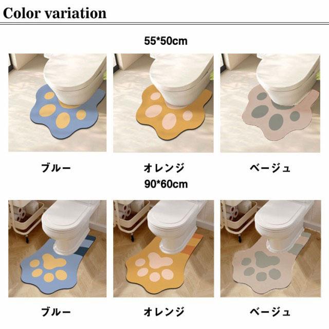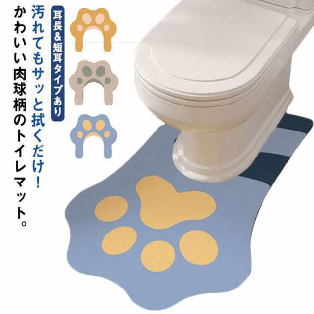 トイレマット 60*90cm 耳長 ロング 肉球柄 かわいい おしゃれ トイレ マット 裾ロング ワイド 大判 柔らかい 拭ける 吸水 洗える 洗濯 滑り止め ずれない トイレマット インテリア ブルー オレンジ ベージュ ネコ 猫 柄