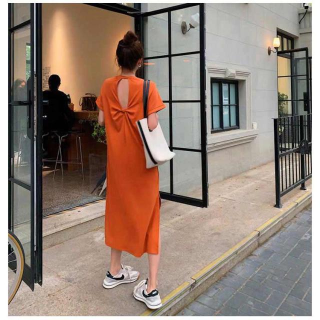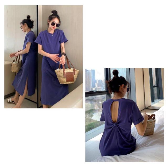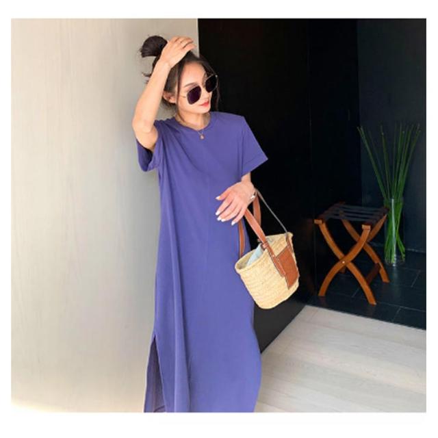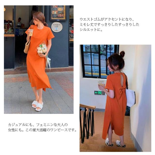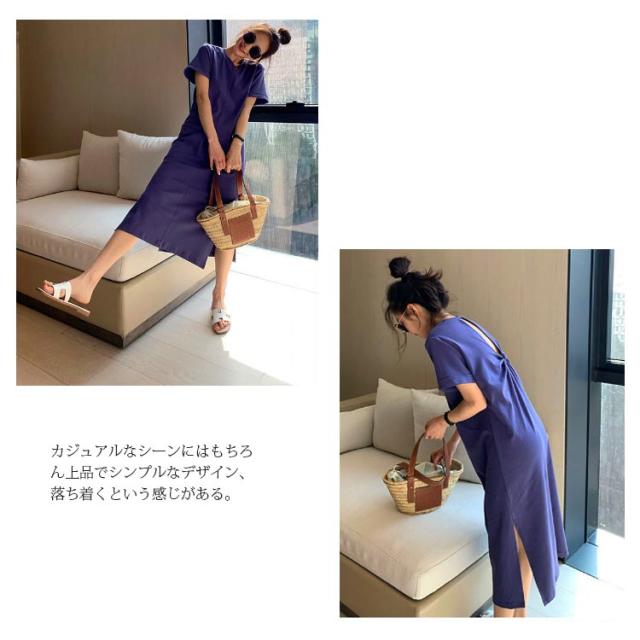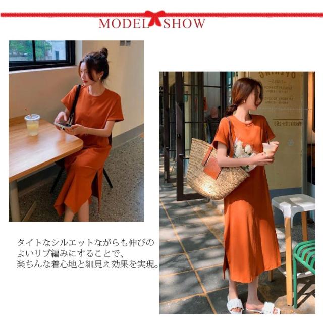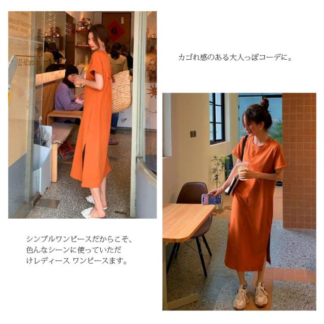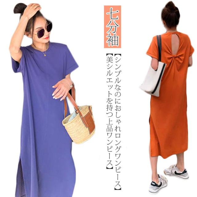 ワンピース レディース 春 夏 秋 きれいめ 半袖 サイド スリット 膝丈 七分袖 無地 ワンピース 韓国風 丸首 大人 女子 オフィス 可愛い お洒落 カジュアル 赤 無地 着?せ 上品 パーティー Uネック ゆったり 30代 40代 50代 送料無料