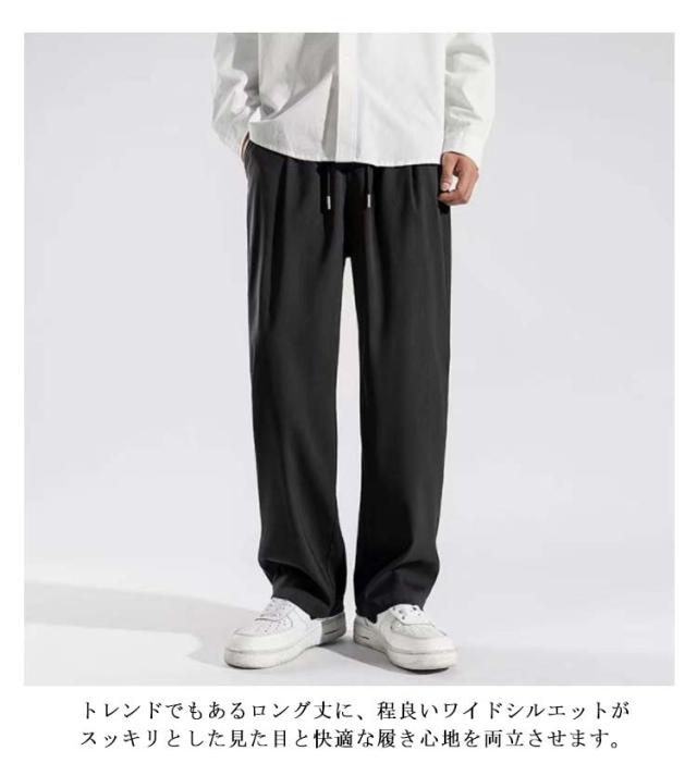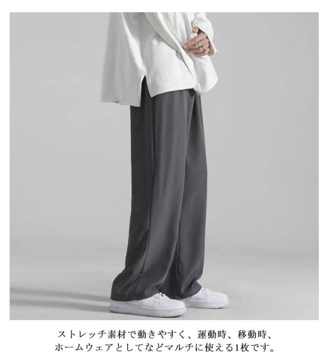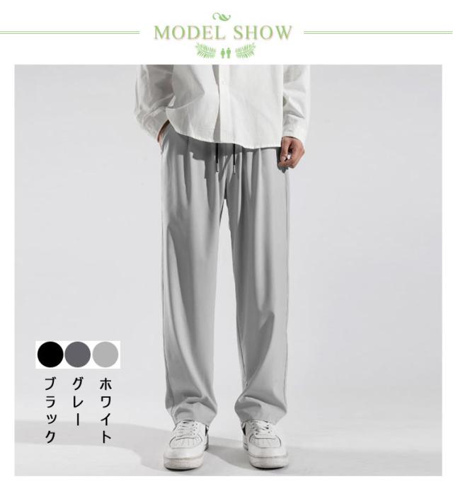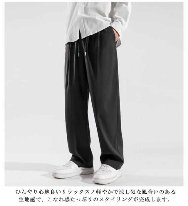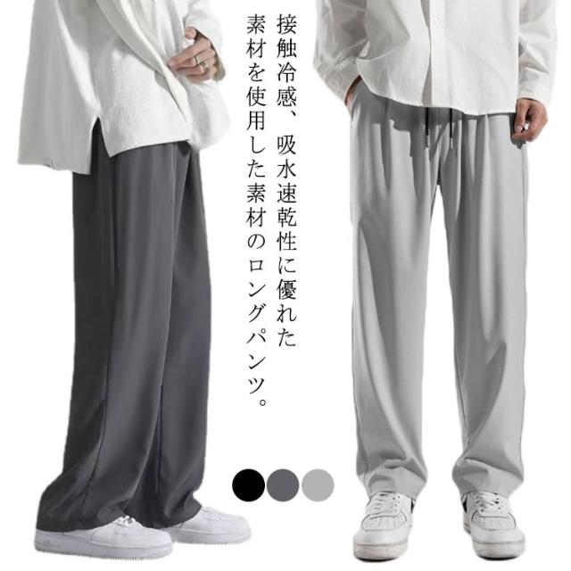 【送料無料】ガウチョパンツ ひんやり 接触冷感 メンズ 速乾 ラクールドライ アイスシルク ストレッチ イージーパンツ スポーツ パンツ ランニングウェア ロングパンツ ワイドパンツ アイス シルク パンツ ブラック ホワイト グレー